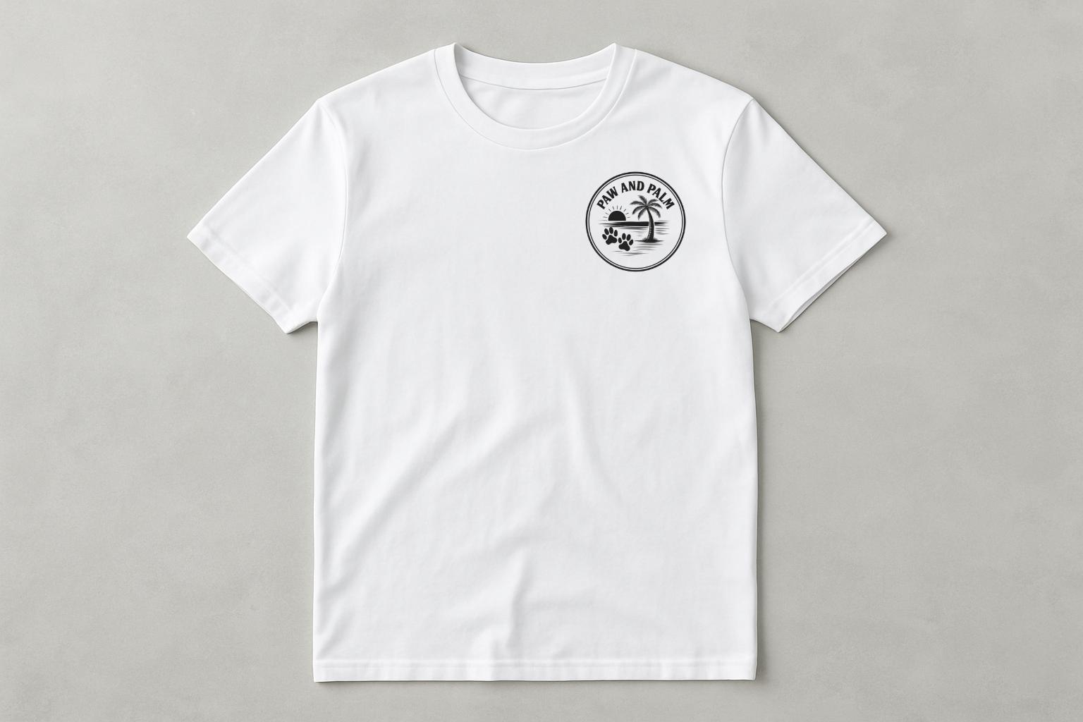 Paw and Palm t-shirt featuring a fun cat playing drums